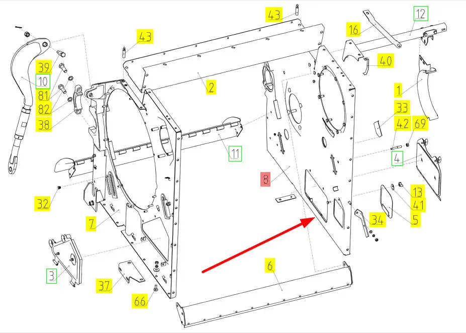 Oryginalny prawy panel młocarni Vector o numerze 102165560, stosowany w kombjnach zbożowych marki Rostselmash.
