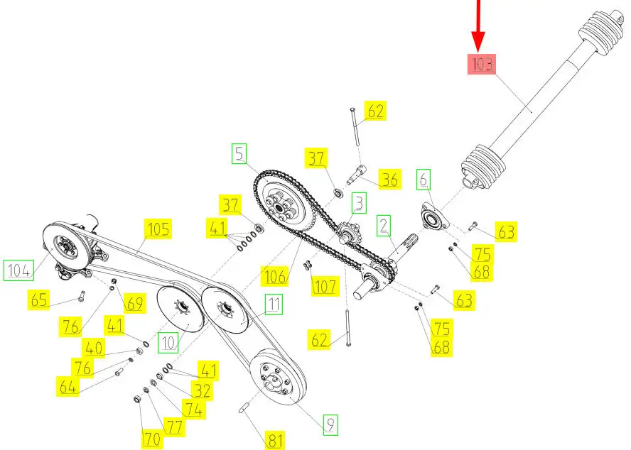 Wałek przekaźnika mocy 6m- 7m 102200126