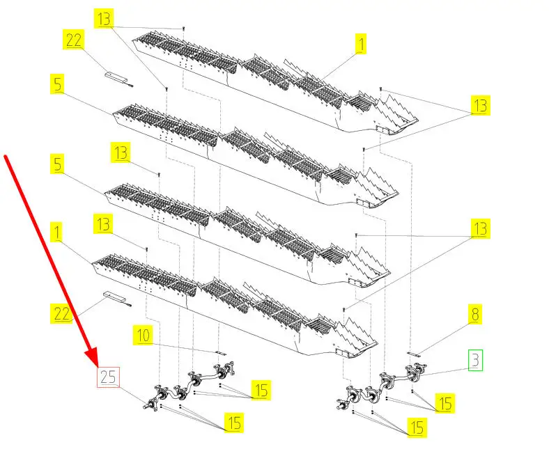 Oryginalny wał wytrząsacza o numerze katalogowym 102245498, stosowany w kombajnach zbożowych marki Rostselmash.