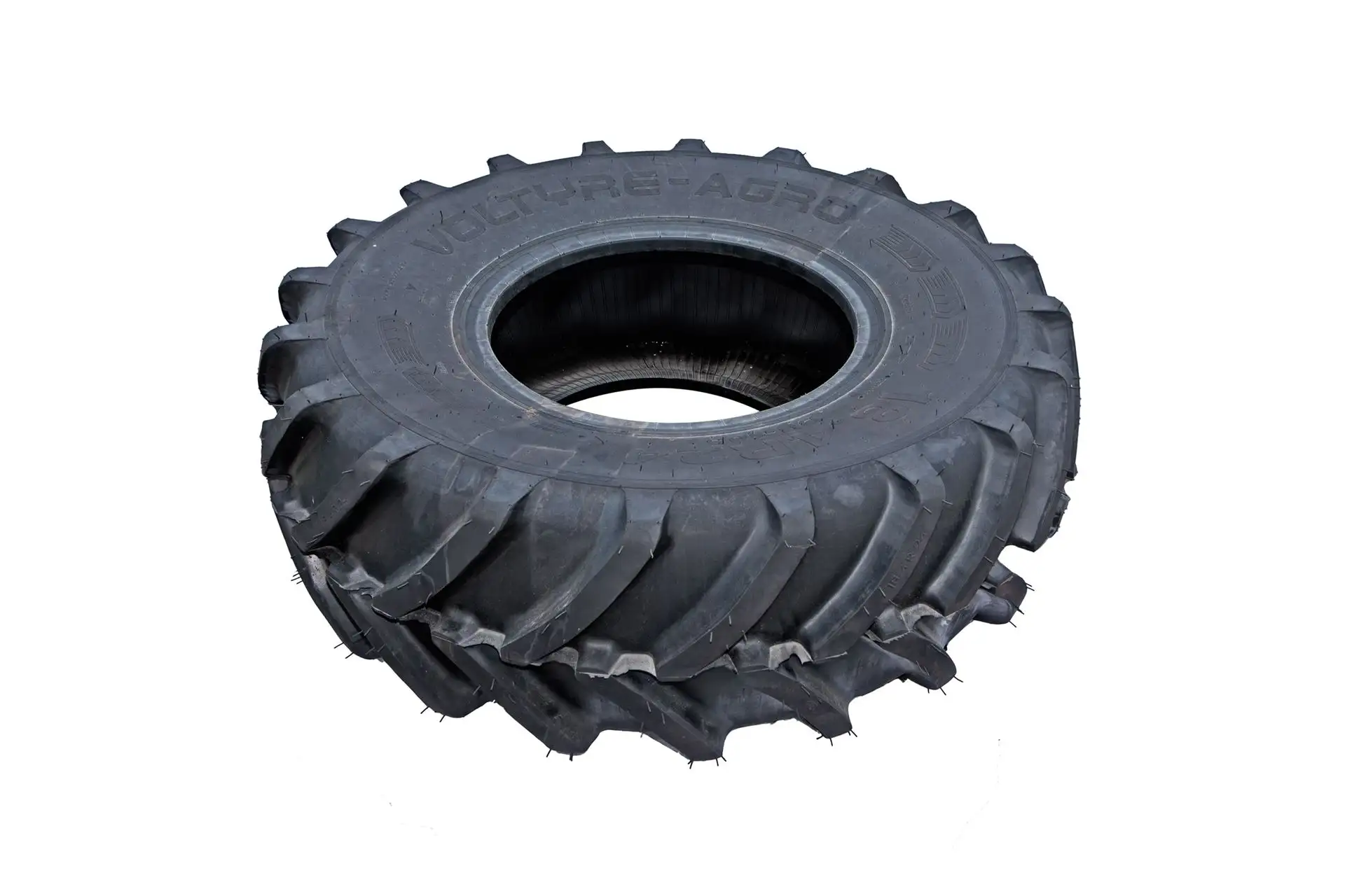 Oryginalna, tylna opona Voltyre Agro o rozmiarze 18,4 R24 i numerze katalogowym 102792557, stosowana w kombajnach zbożowych marki Rostselmash.