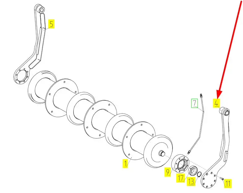 Oryginalne ramię lewe bębna podajnika pochyłego o numerze katalogowym 103258692, stosowane w kombajnach zbożowych marki Rostselmash.