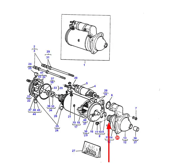 Oryginalny bendiks rozrusznika o numerze katalogowym 1052441M91, stosowany w ciągnikach rolniczych marki Massey Ferguson.