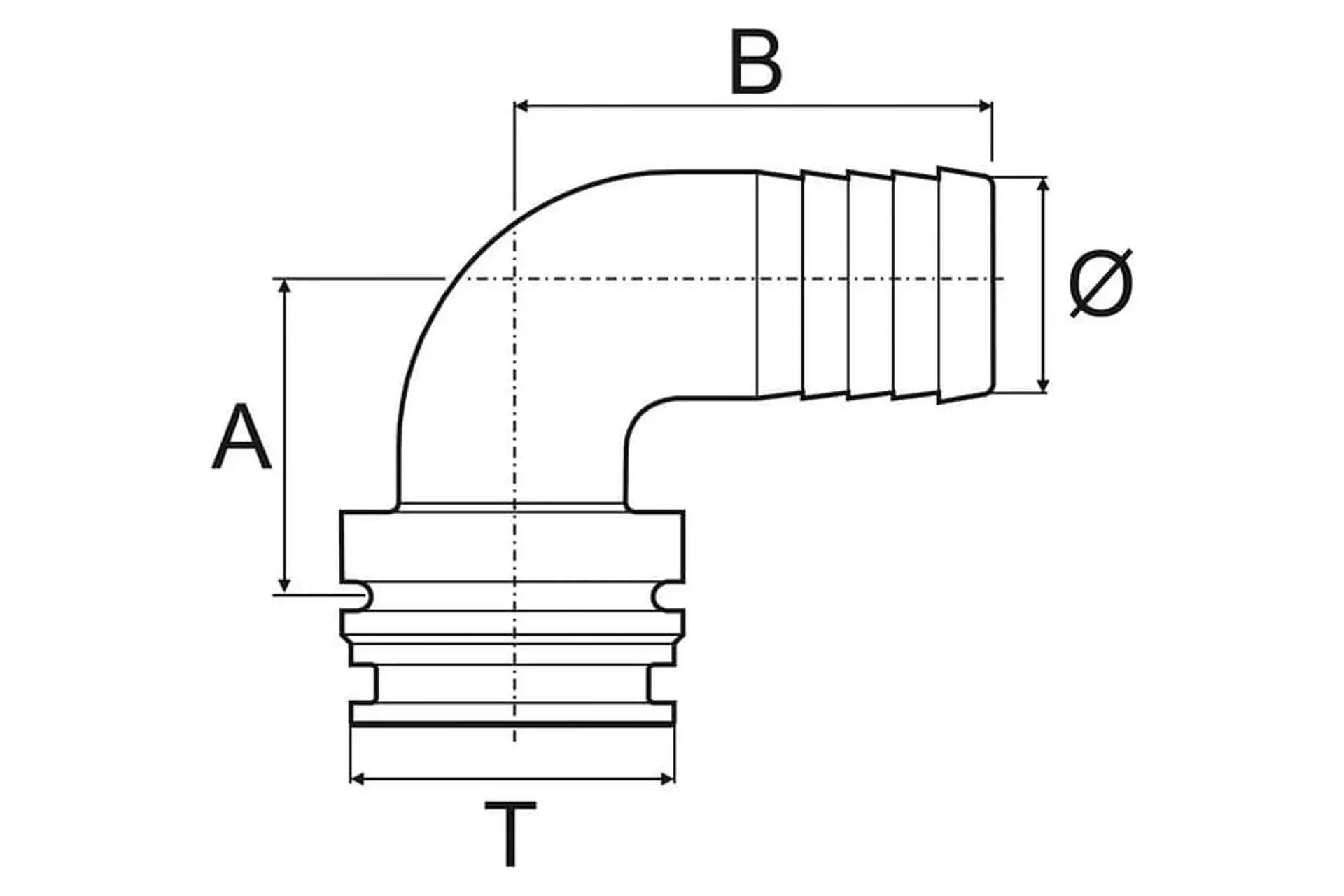 Przyłącze węża 90° T4M 13 mm