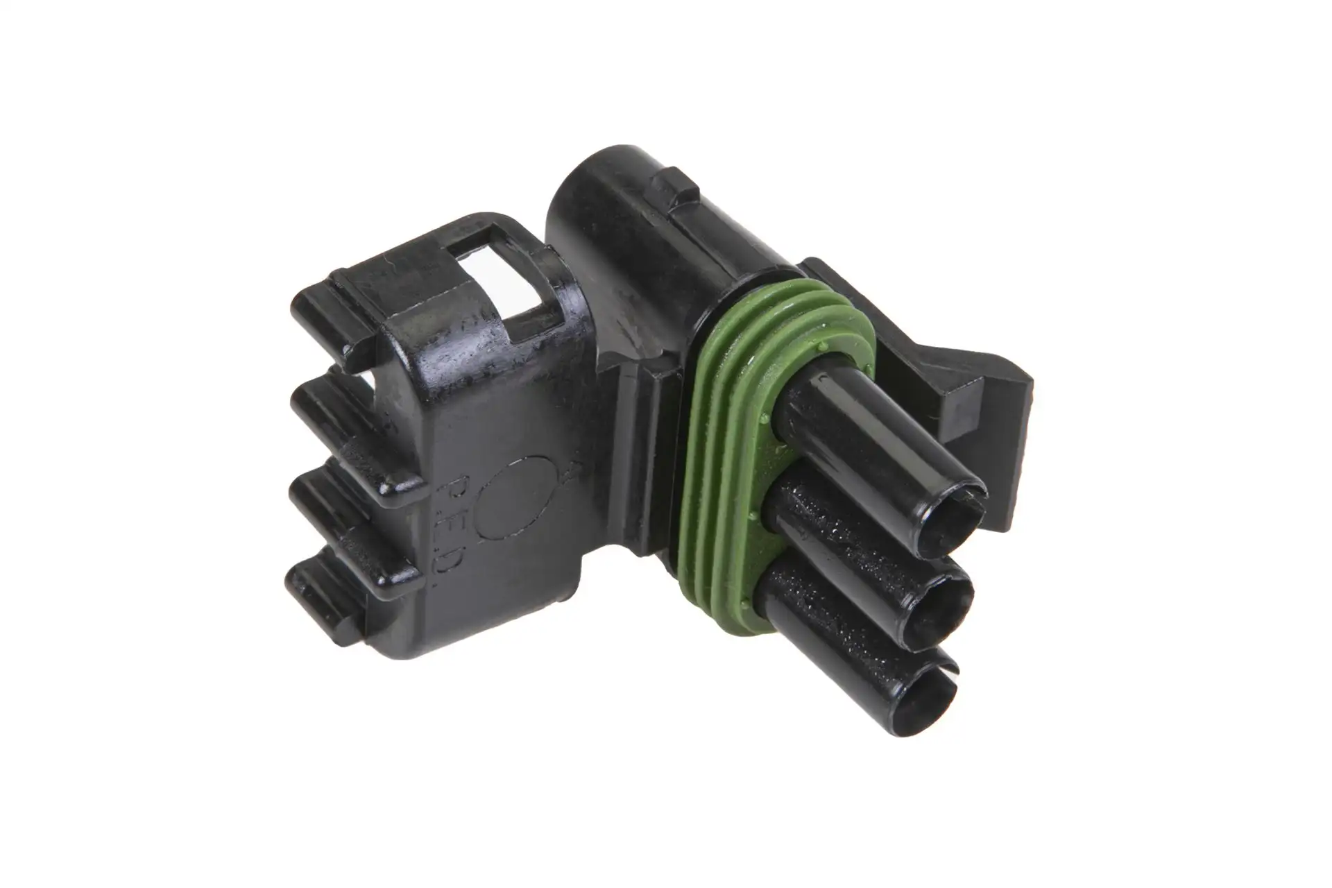Złącze Weather Pack Tower wtyk żeński 3 PIN o numerze katalogowym 12015793, szeroko stosowane w maszynach i pojazdach rolniczych wielu marek.