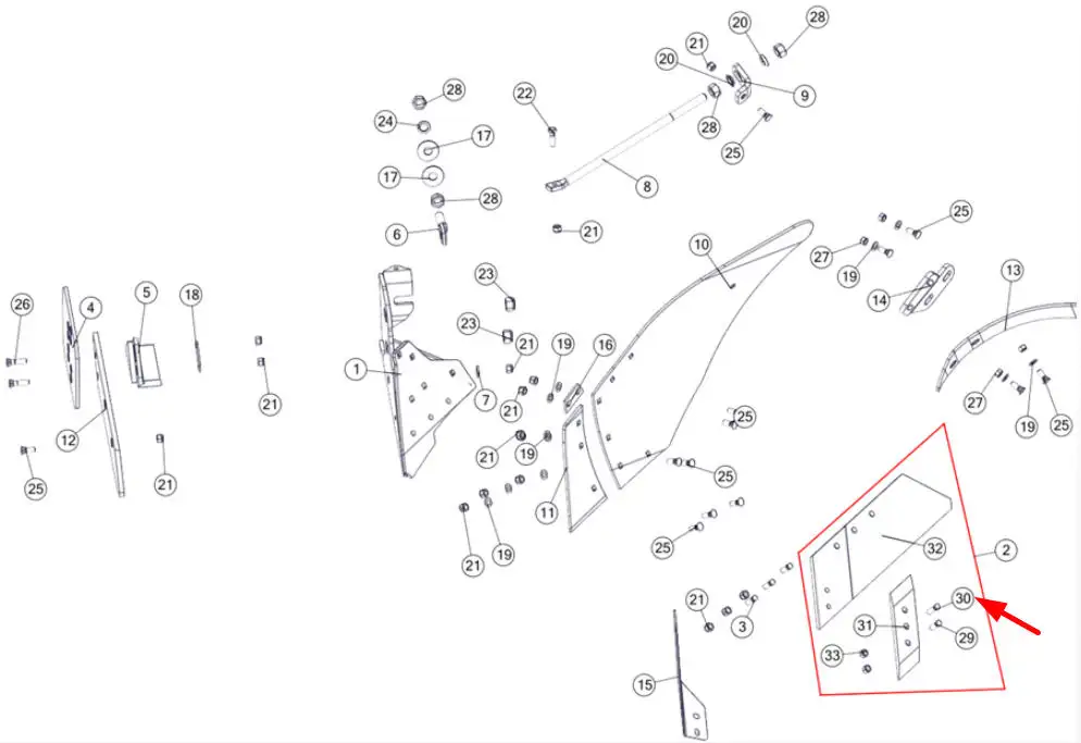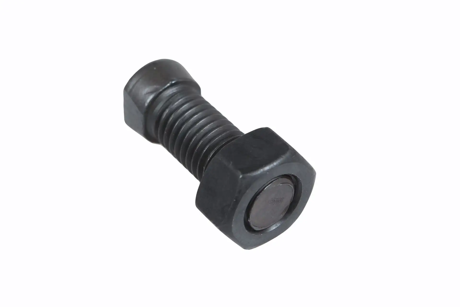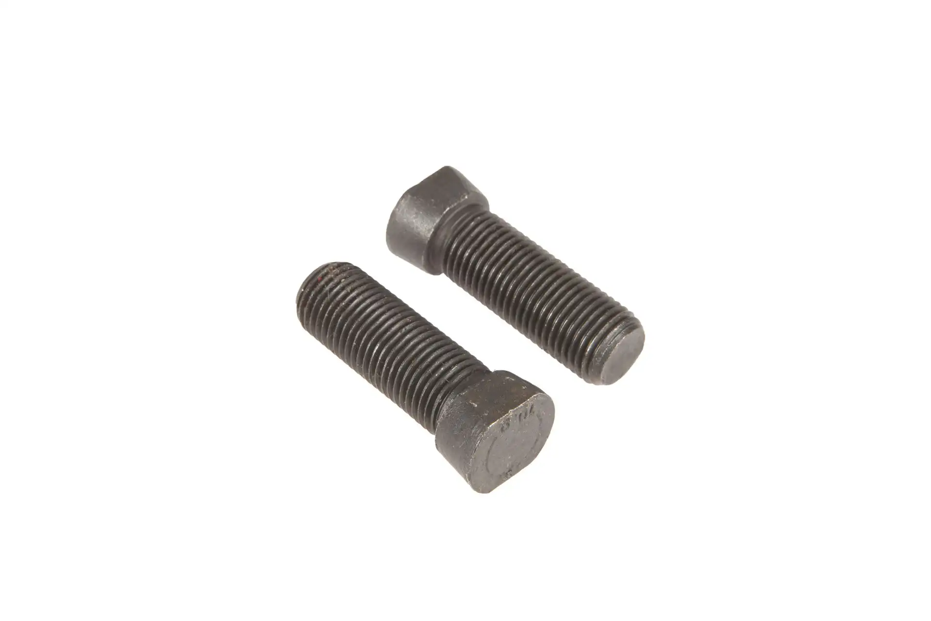 Śruba płużna z nakrętką, stożkowa 2-stronnie ścięta o wymiarach M12 x 1,75 x 38, dł. gwintu 30 mm, klasie twardości 12.9 i numerze katalogowym 1238C2FP025, szeroko, stosowana w maszynach rolniczych marki Unia, Kverneland, Gregoire Besson.