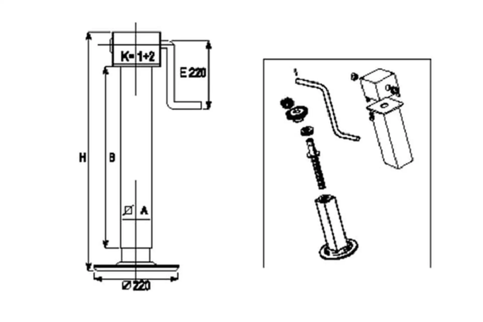 Noga podporowa, DG701, 70 x 500, 2200 kg, wysuw 330 mm 1280101120