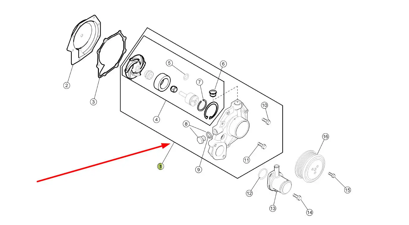 Pompa wody o numerze katalogowym 130-211.02, stosowana w ciągnikach rolniczych marek Claas i Renault.