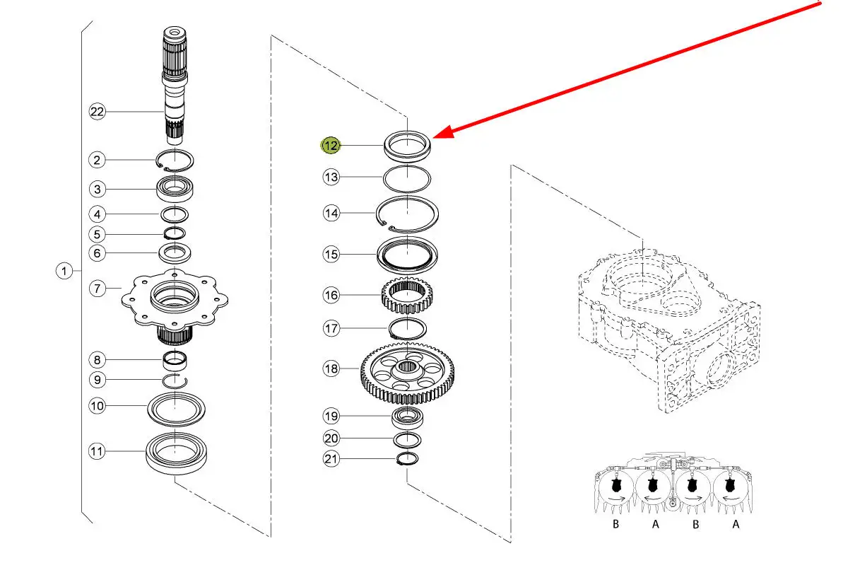 Oryginalny pierścień przekładni kątowej o numerze katalogowym 139330.0, stosowany w przystawkach do kukurydzy marki Claas.