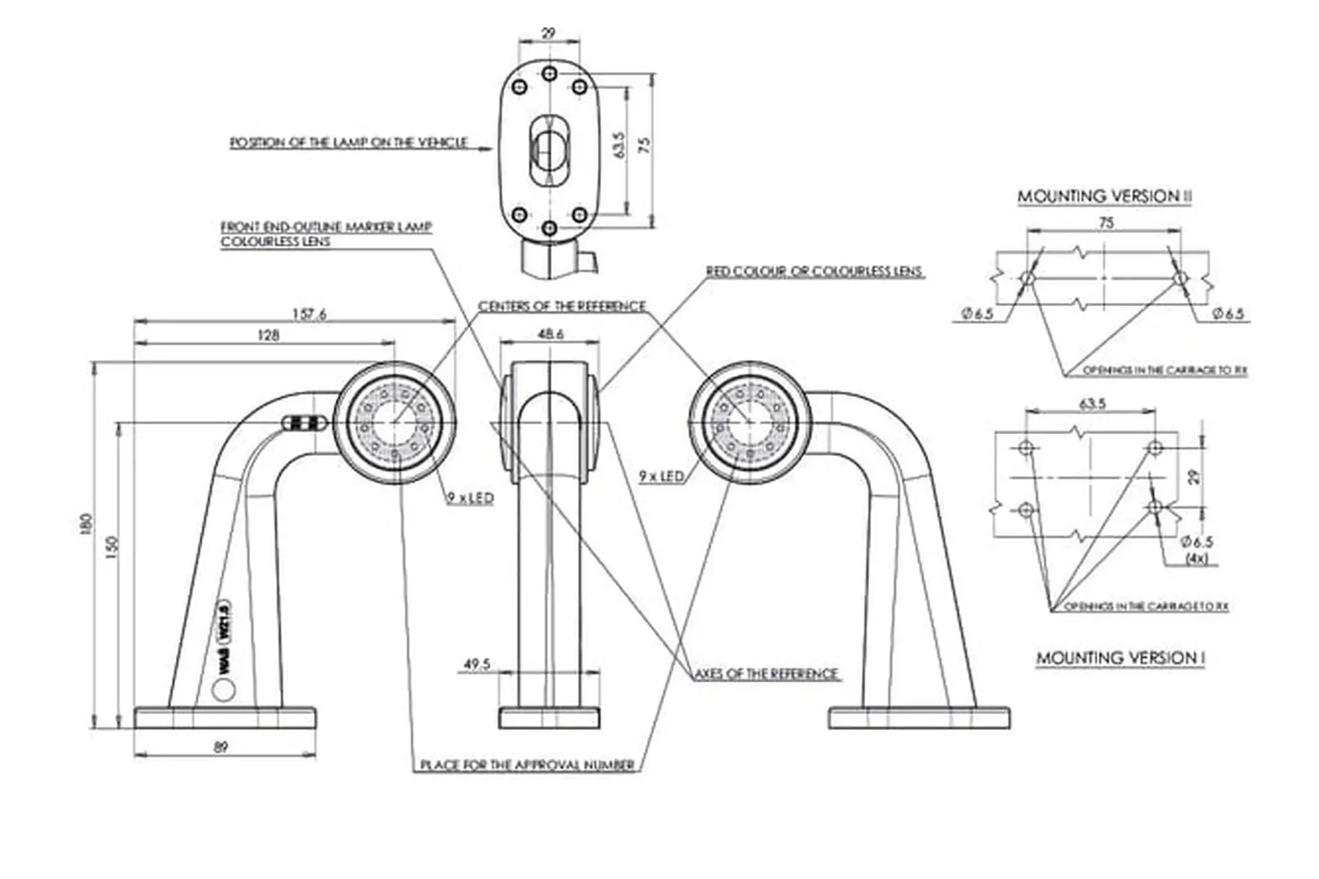 Lampa obrysowa LED, prawa, 12/24V czerwona/przezroczysta, przykręcana Waś