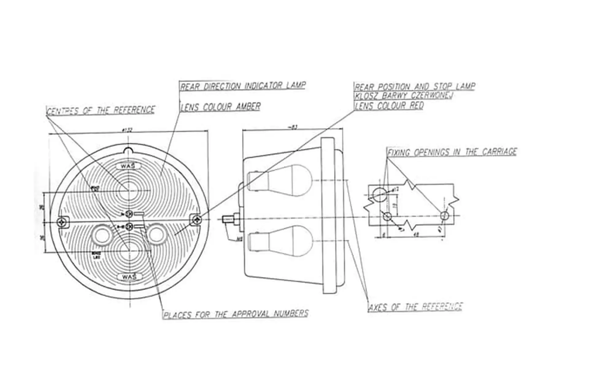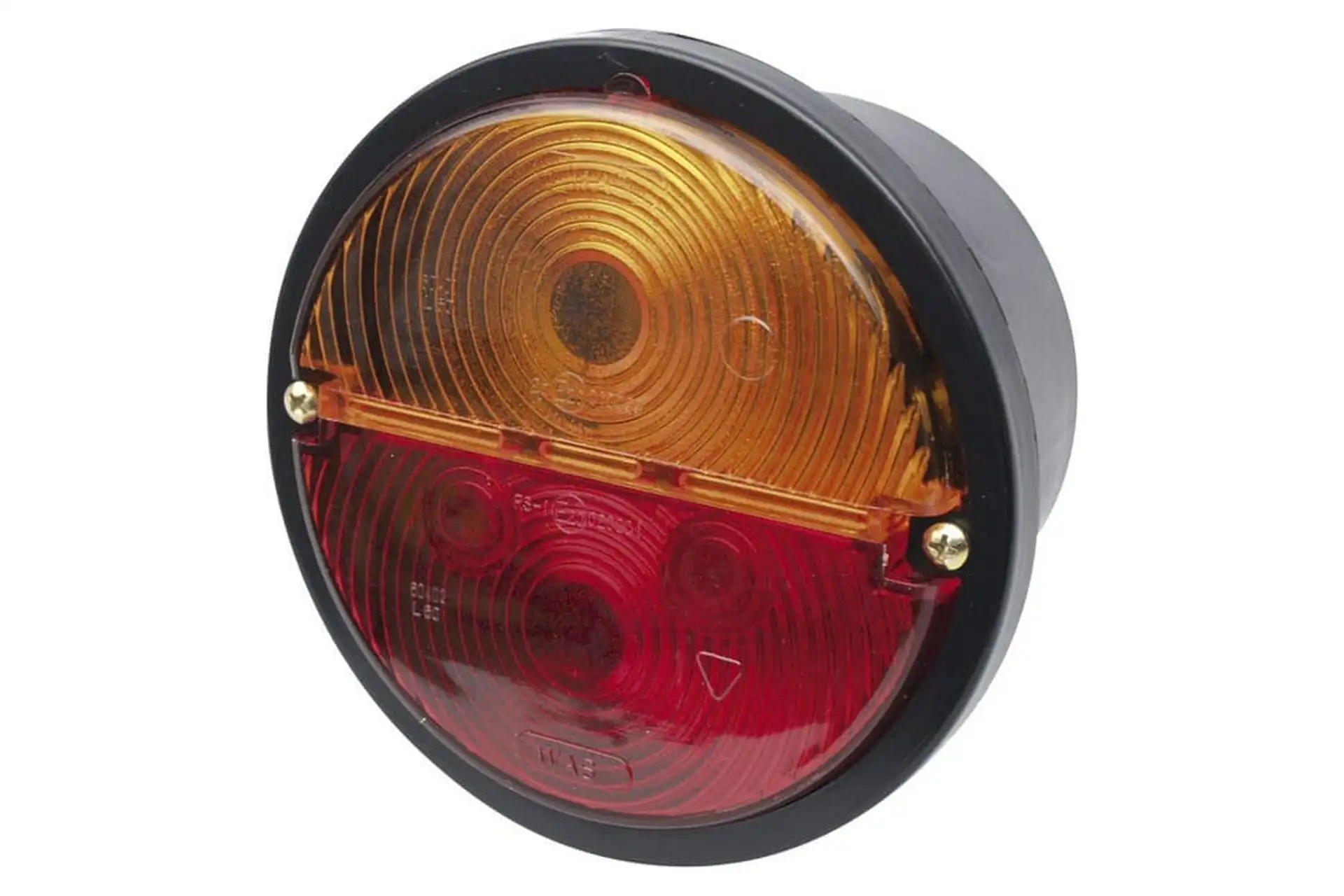 Lampa tylna zespolona, okrągła, Ø 132 mm prawa, 12/24V pomarańczowa/czerwona, przykręcana Waś