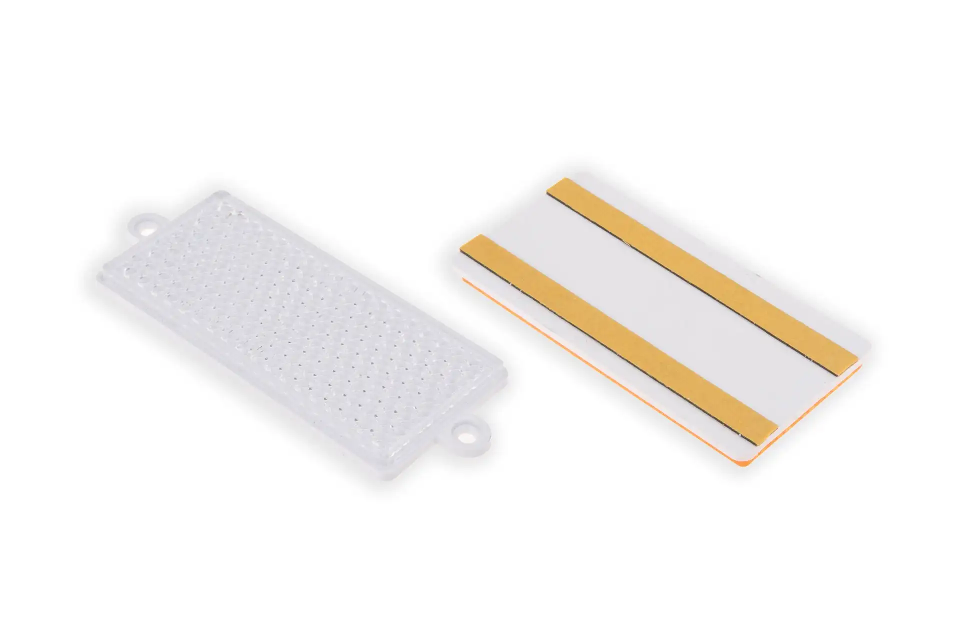 Odblask biały prostokątny przykręcany o numerze katalogowym 1415-000210, stosowany w maszynach rolniczych różnych marek.