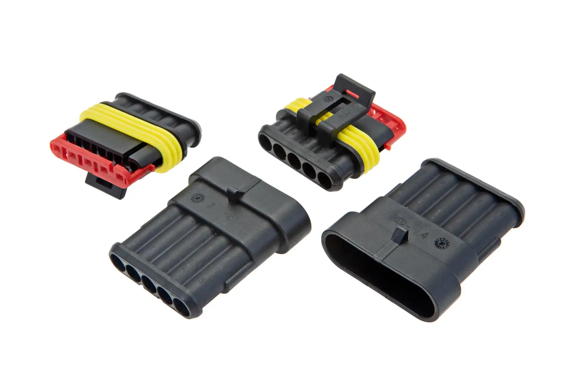 Złączka hermetyczna 5 pinów o numerze katalogowym 153138, szeroko stosowana w maszynach i pojazdach wielu marek.