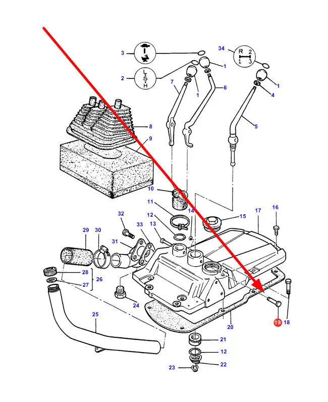 Oryginalny sworzeń zabezpieczjący dźwignie biegów o numerze katalogowym 1663178M1, stosowany w ciagnikach rolniczych marki Massey Ferguson.