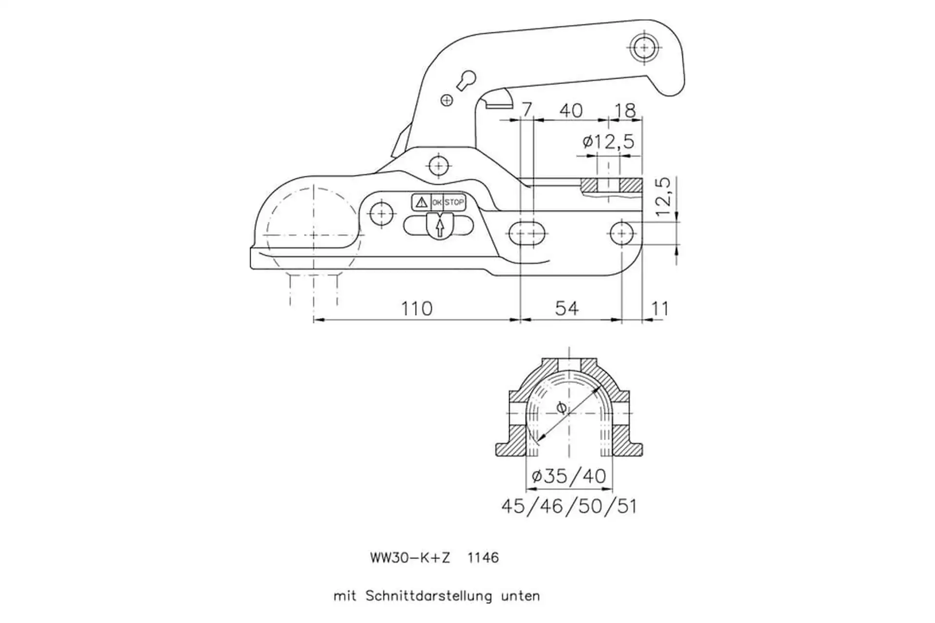 Zaczep kulowy 3000 kg Ø 35-51 mm