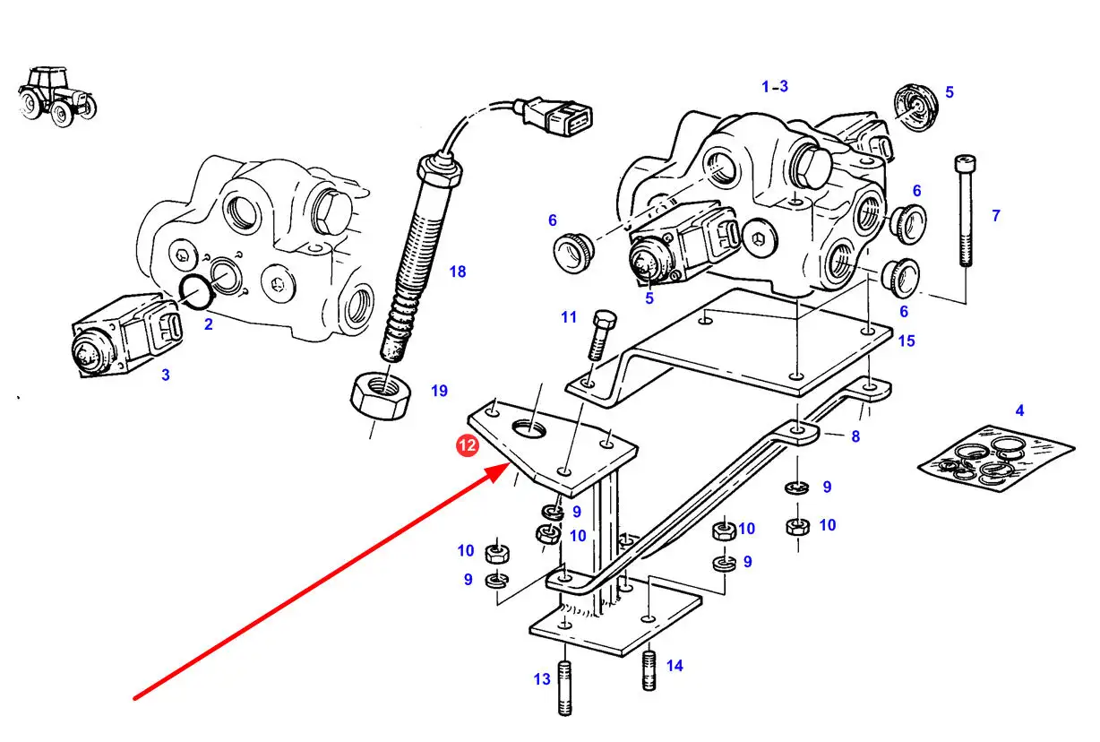 Oryginalna podstawa montażowa bloku zaworowego przedniego TUZ, stosowana w ciągnikach rolniczych marki Fendt.
