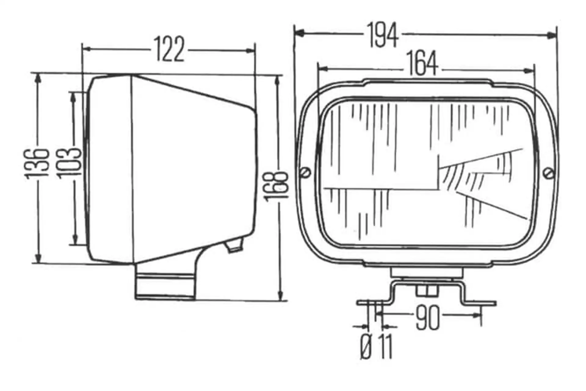 Reflektor halogenowy, prostokątny 12/24V przezroczysty przykręcany 194x122x168 mm Hella 1AB004231001