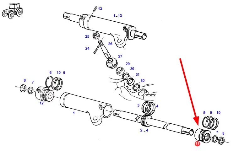 Oryginalny cylinder wspomagania układu kierowniczego, stosowany w ciągnikach rolniczych marki Fendt.