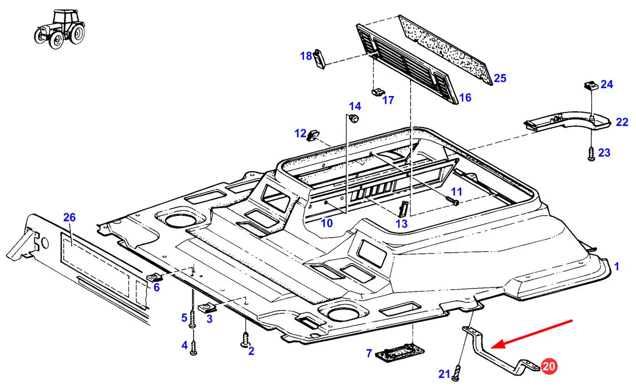Oryginalny uchwyt podsufitki o numerze 210812010010, stosowany w ciągnikach rolniczych marki Fendt.