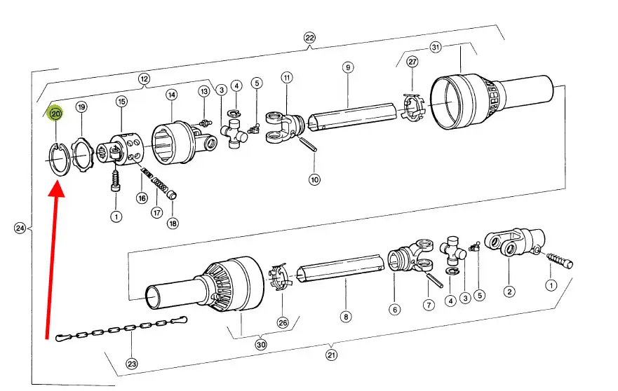 Oryginalny pierścień segera o wymiarach 82 x 2,5 mm, stosowany w maszynach rolniczych marki Claas.