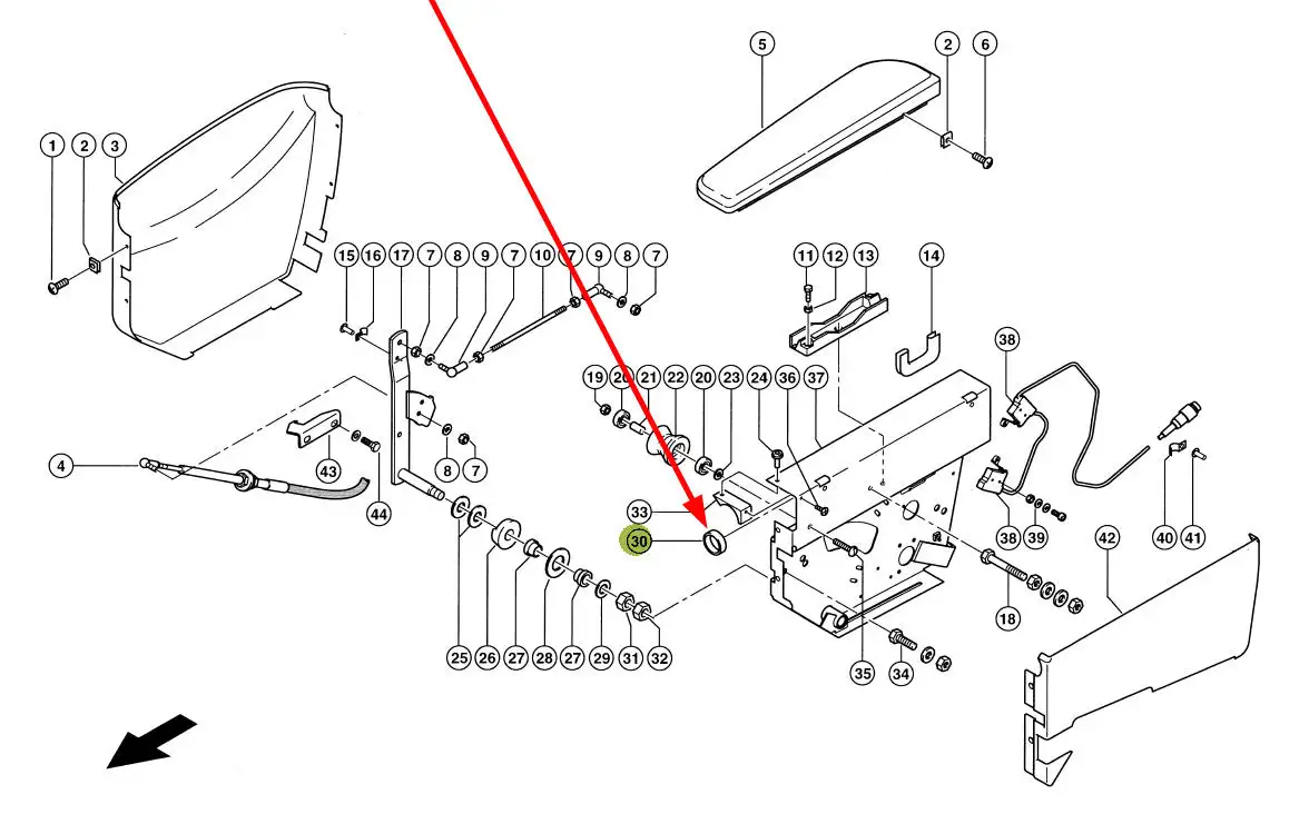 Oryginalna tuleja dźwigni zmiany kierunku jazdy o wymiarach 30 x 35 x 9,7 mm i numerze katalogowym 216027.0, stosowana w kombajnach zbożowych, sieczkarniach samojezdnych marki Claas.