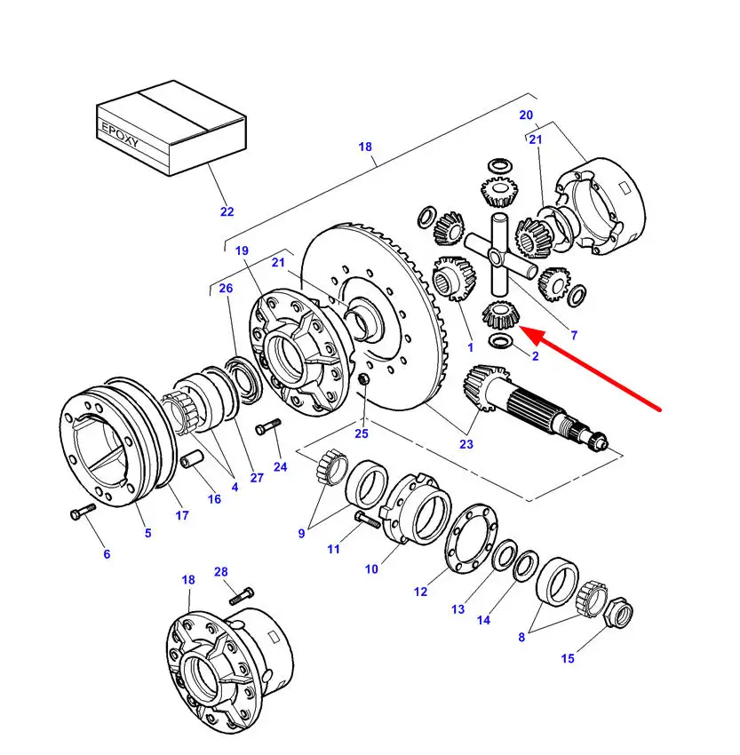 Oryginalny satelita mechanizmu różnicowego o numerze katalogowym 2746322M1, stosowany w ciągnikach rolniczych marek Challenger i Massey Ferguson.
