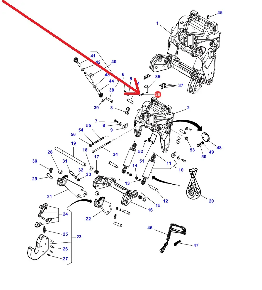 Oryginalna zawleczka sworznia zaczepu przedniego TUZ o numerze katalogowym 3010334X1, stosowana w ciągnikach rolniczych marki Massey Ferguson, Challenger, Valtra.