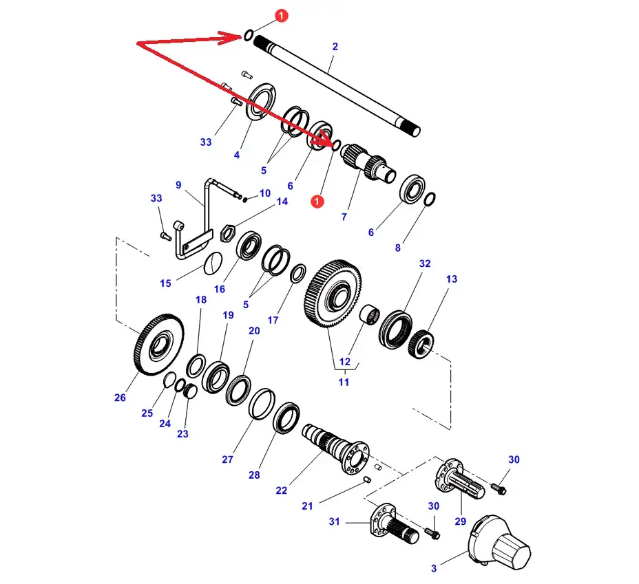 Oryginalny pierścień metalowy przekładni WOM o numerze katalogowym 3015044X1, stosowany w ciągnikach rolniczych marki Massey Ferguson.