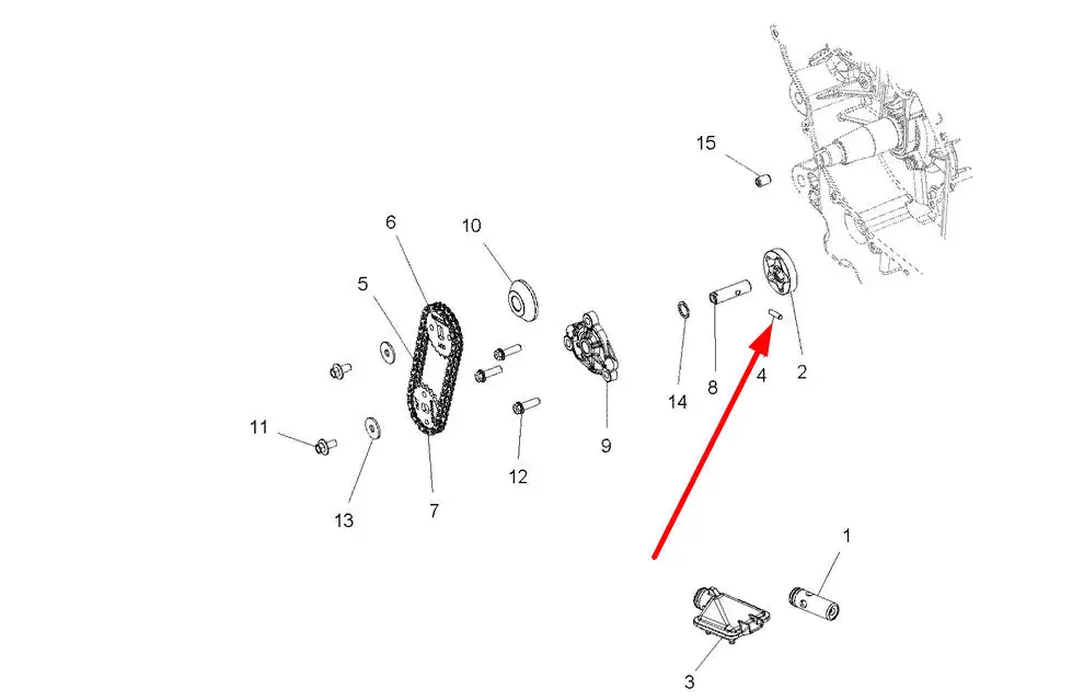 Oryginalny kołek blokujący wałka pompy oleju o wymiarach M4 x 15.8 mm i numerze katalogowym 3022308, stosowany w quadach marki Polaris.