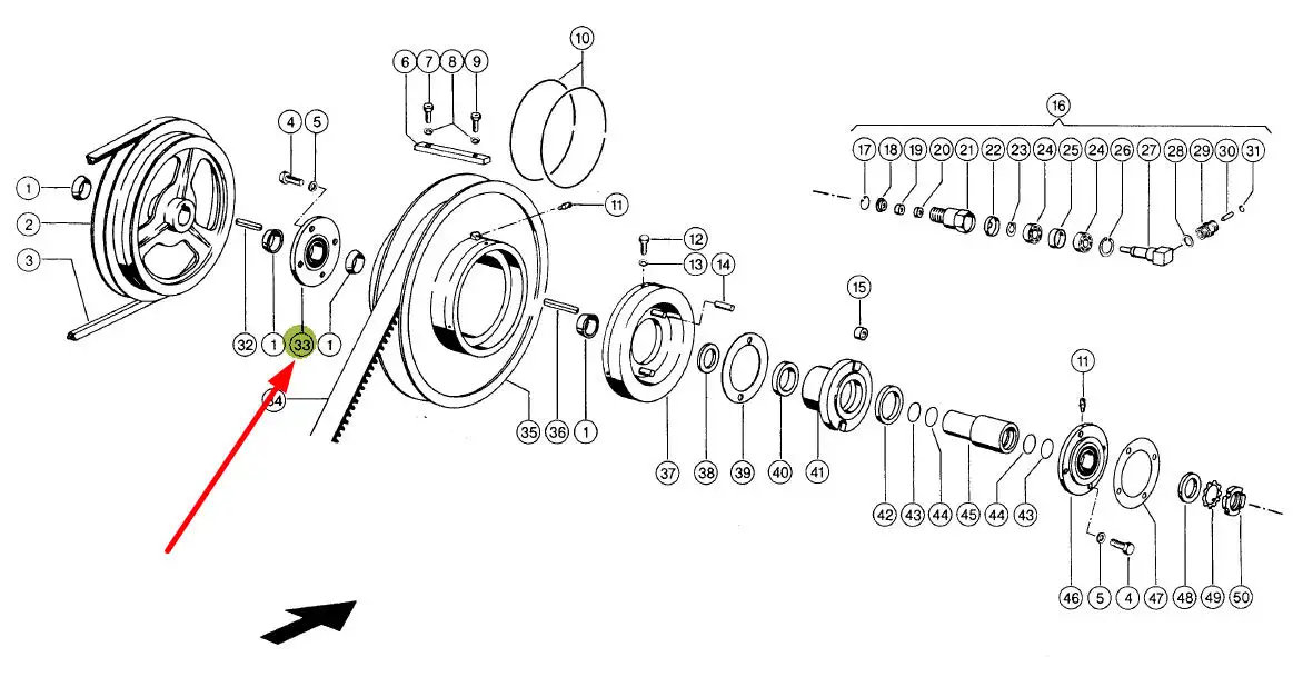 Łożysko z oprawą regulacji bębna wariatora o wymiarach 45 x 150 mm i numerze katalogowym 30256292200, stosowane w kombajnach zbożowych marki Claas.