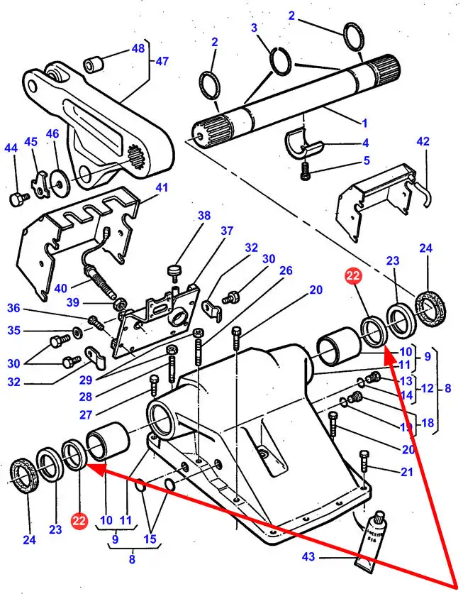 Zamiennik oryginalnej tulei wału ramion podnośnika tylnego stosowanej w ciągnikach rolniczych marki Massey Ferguson o numerze katalogowym 3045416M1.