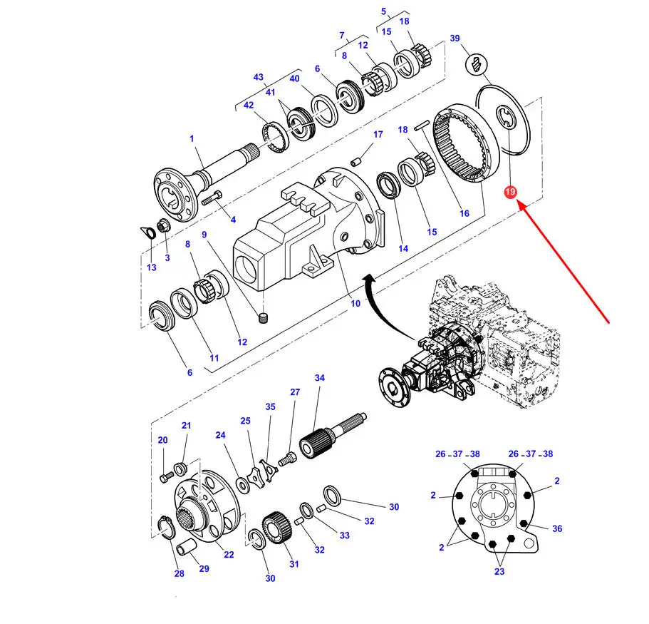 Oryginalna blokada wałka zwolnicy o numerze katalogowym 3052650M1, stosowana w ciągnikach rolniczych marek Massey Ferguson i Challenger.
