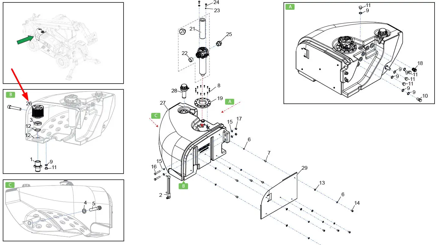 Oryginalny filtr oleju hydrauliki o numerze katalogowym 308539180, stosowany w ładowarkach teleskopowych marki Faresin.