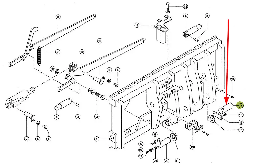 Oryginalny sworzeń zabezpieczający dźwigaru narzędzi roboczych, stosowany w ładowarkach teleskopowych Ranger oraz Targo marki Claas.