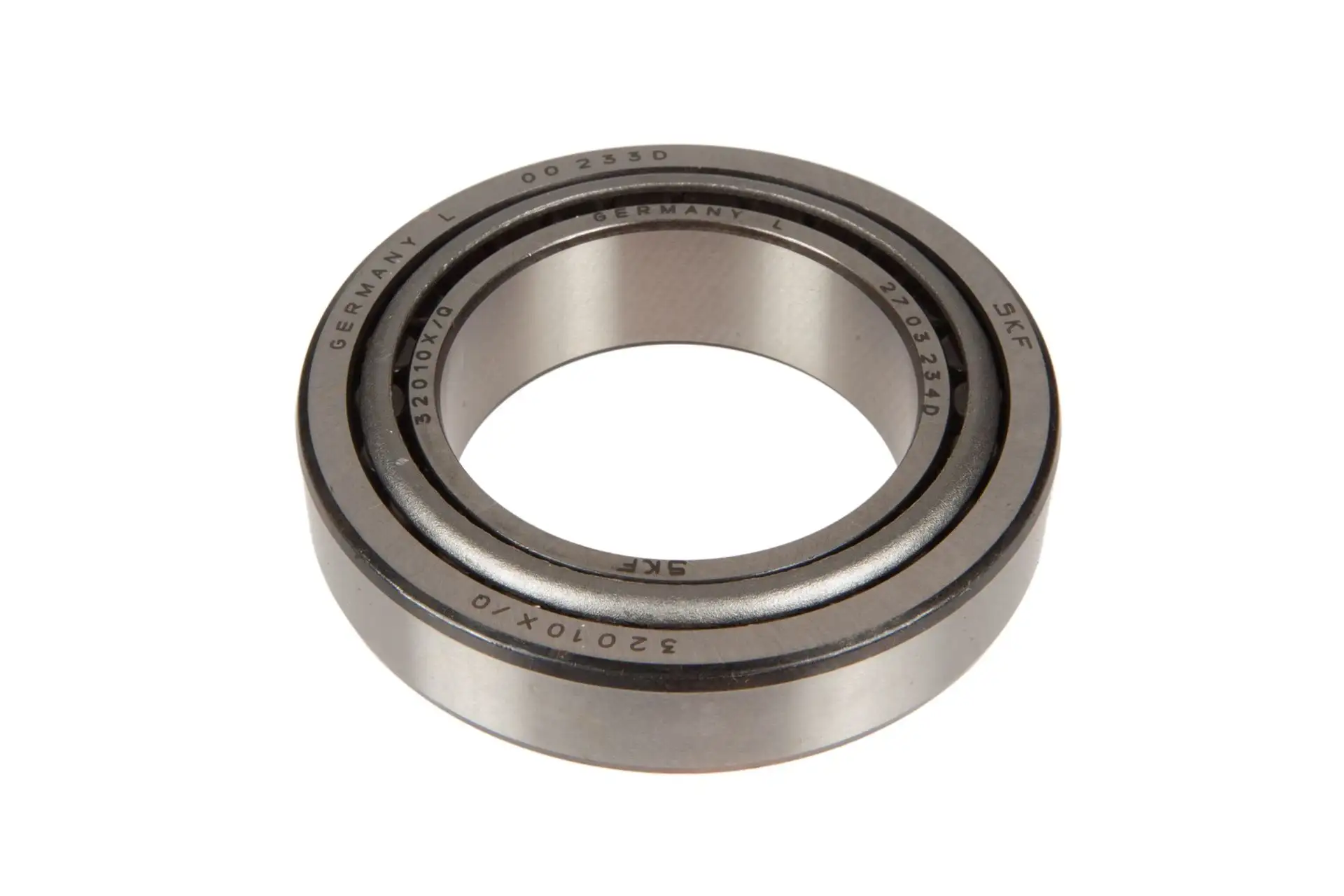 Łożysko stożkowe 1-rzędowe o wymiarach 50 x 80 x 20 mm i oznaczeniu 32010X, stosowane w maszynach i pojazdach rolniczych wielu marek.