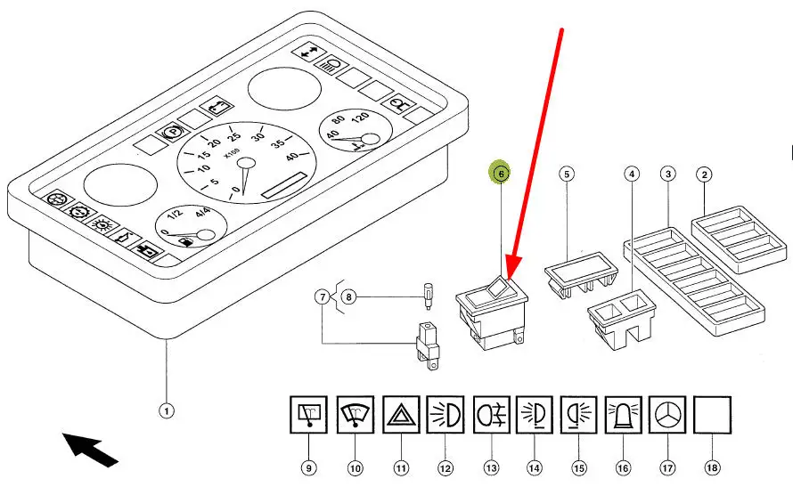Oryginalny przełącznik klawiszowy o numerze katalogowym 322937.0, stosowany w ładowaczach teleskopowych marki Claas.