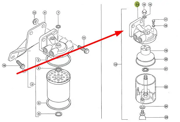 Oryginalna głowica filtra paliwa o numerze katalogowym 324624.0, stosowana w ładowarkach teleskopowych marki Claas.