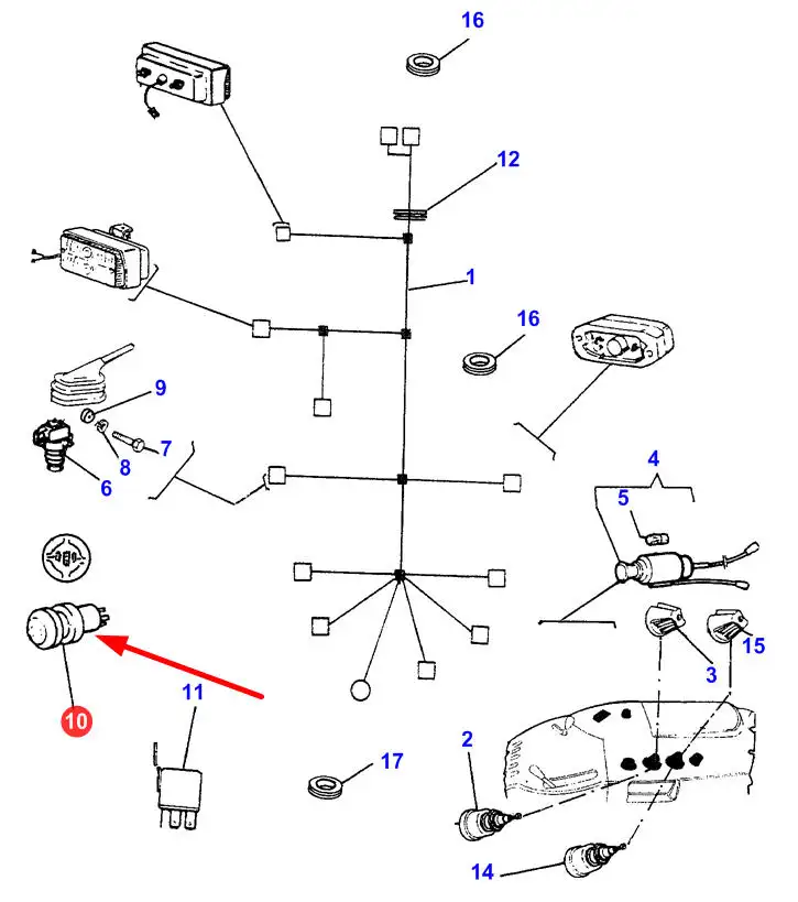 Oryginalny włącznik blokady o numerze katalogowym 3384575M1, stosowany w ciągnikach rolniczych marki Massey Ferguson.