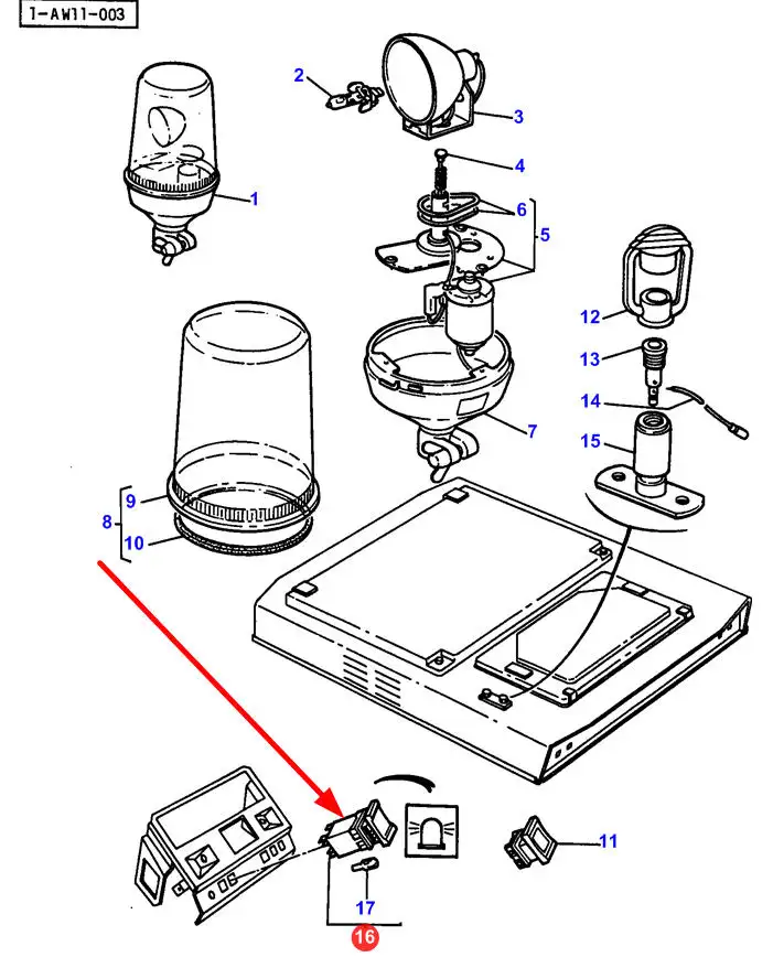 Oryginalny przełącznik lampy ostrzegawczej, stosowany w ciągnikach Massey Ferguson.