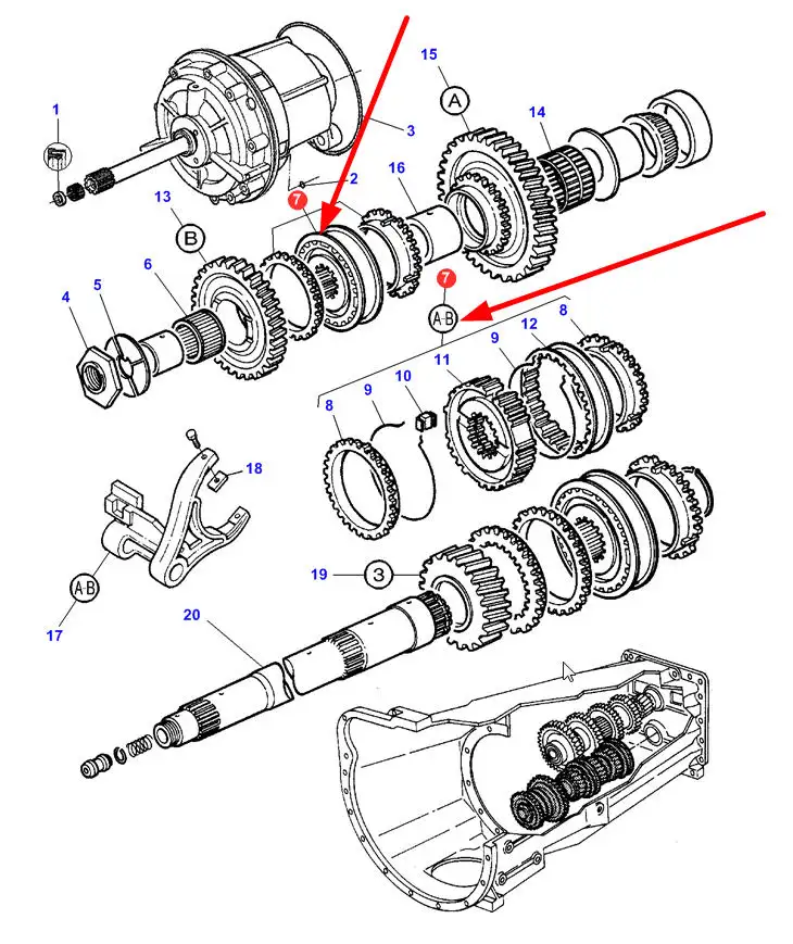 Oryginaly synchronizator skrzyni biegów, stosowany w ciągnikach marki Massey Ferguson.