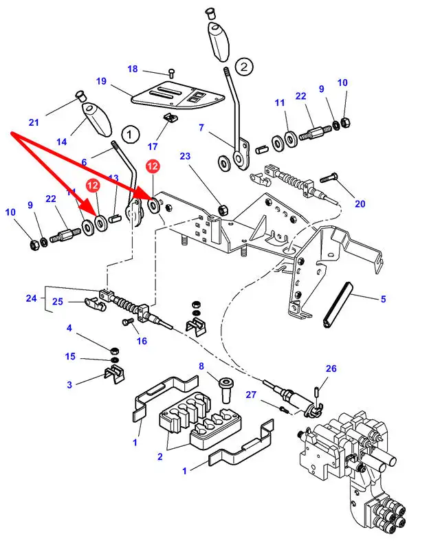 Oryginalna podkładka dźwigni sterujących o wymiarach 14/14,4 x 38 x 1 mm i numerze katalogowym 3386514M1, stosowana w ciągnikach rolniczych marek Challenger oraz Massey Ferguson.