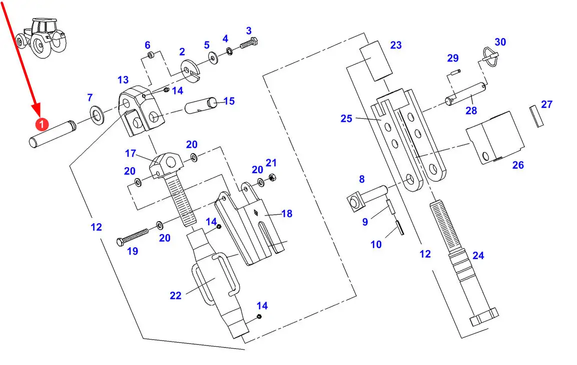 Oryginalny sworzeń wieszaka tylnego podnośnika o numerze katalogowym 339870030010, stosowany w ciągnikach rolniczych marki Fendt.