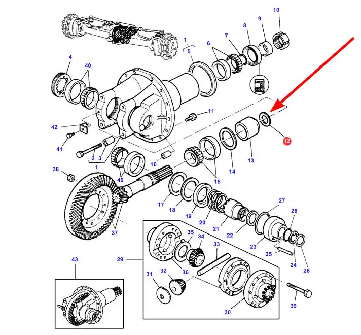 Oryginalna podkładka dystansowa wałka ataku przedniego dyferencjału o grubości 0,50 mm, stosowana w ciągnikach rolniczych marek Challenger i Massey Ferguson.