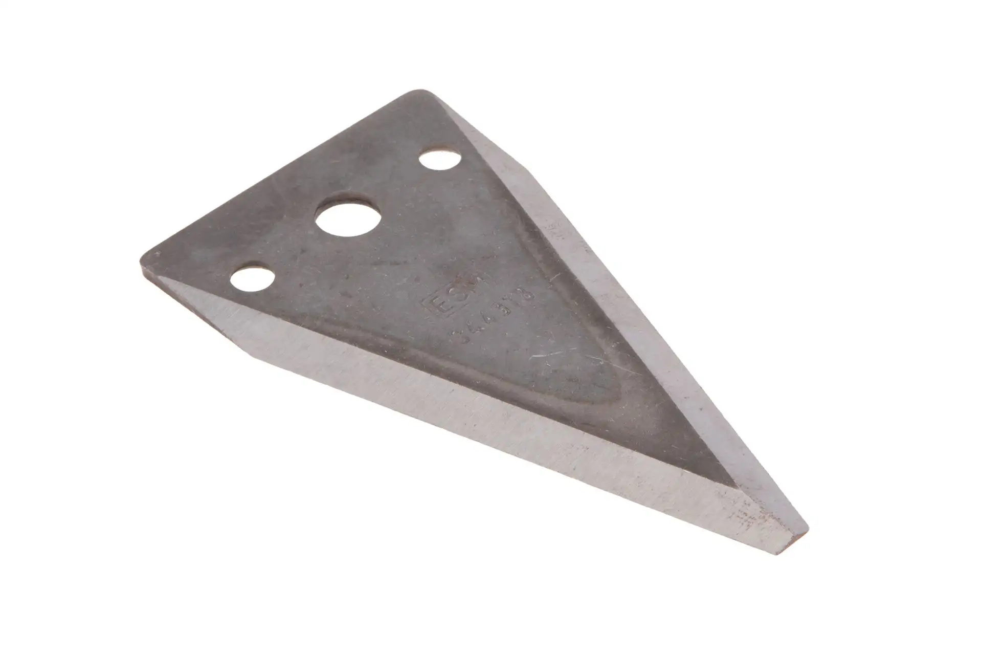 Nóż tnący gładki marki ESM o długości 105 mm, szerokości 58 mm, grubości 2,7 mm, szeroko stosowany w maszynach rolniczych wielu marek.