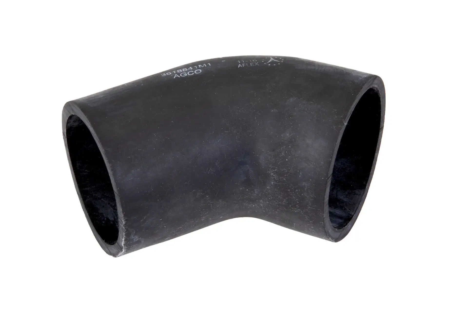 Oryginalne kolano gumowe filtra powietrza o numerze katalogowym 3618841M1, stosowane w ciągnikach rolniczych marki Massey Ferguson.