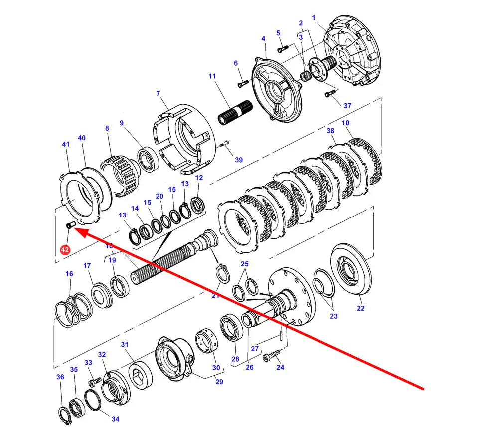 Oryginalny sworzeń sprzęgła mokrego o numerze katalogowym 3714571M1, stosowany w ciągnikach rolniczych marki Massey Ferguson.