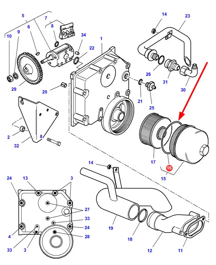 Oryginalny pierścień uszczelniający filtra oleju hydrauliki, stosowany w maszynach marki Massey Ferguson i Challenger.