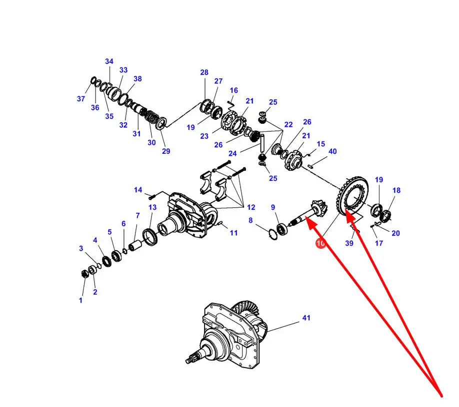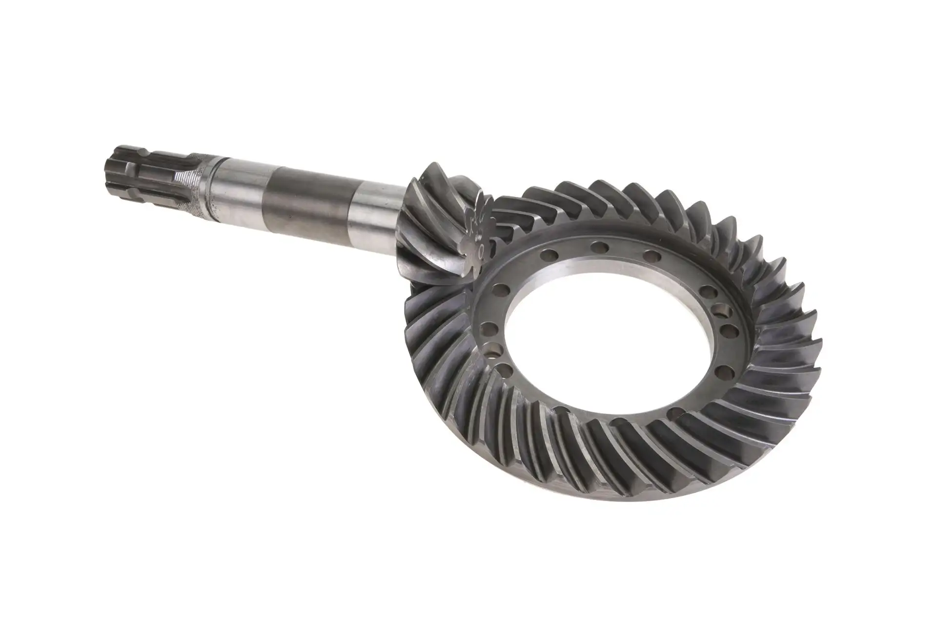 Oryginalny wałek atakujący z kołem talerzowym mechanizmu różnicowego przedniego napędu o numerze katalogowym 3766285M92, stosowany w ciągnikach rolniczych marki Massey Ferguson, Challenger.