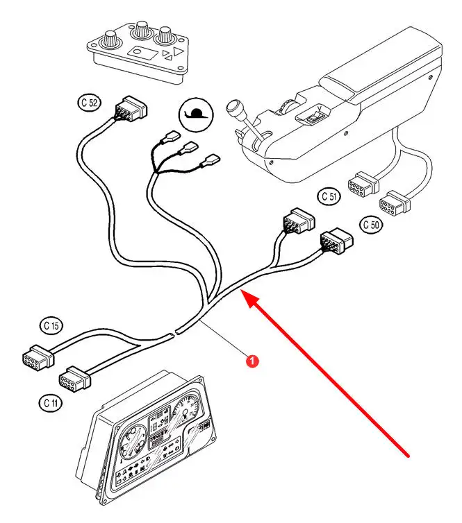 Oryginalna wiązka elektryczna podłokietnika, stosowana w ciągnikach marki Massey Ferguson.