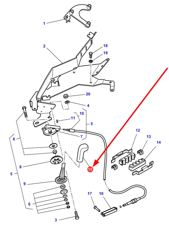 Oryginalny uchwyt plastikowy dźwigni gazu ręcznego o numerze katalogowym 3785000M1, stosowany w ciągnikach rolniczych marek Massey Ferguson, Challenger.