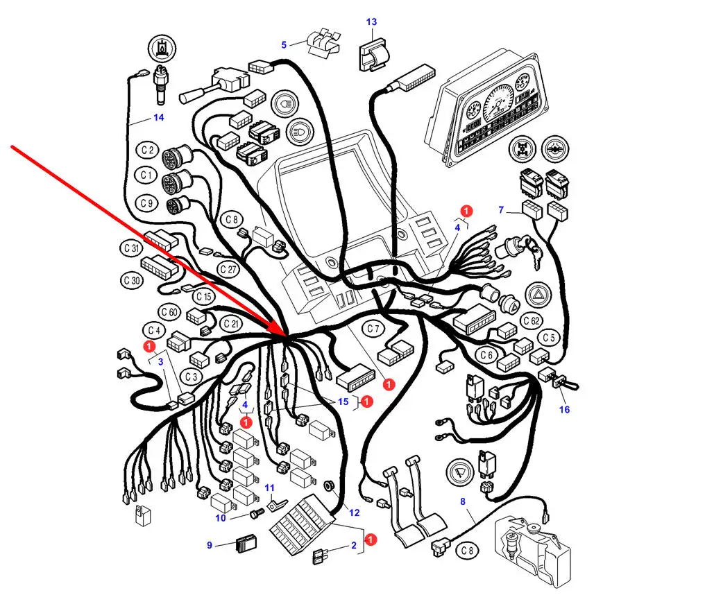 Oryginalna główna wiązka elektryczna kabiny, stosowana w ciągnikach rolniczych marki Massey Ferguson.